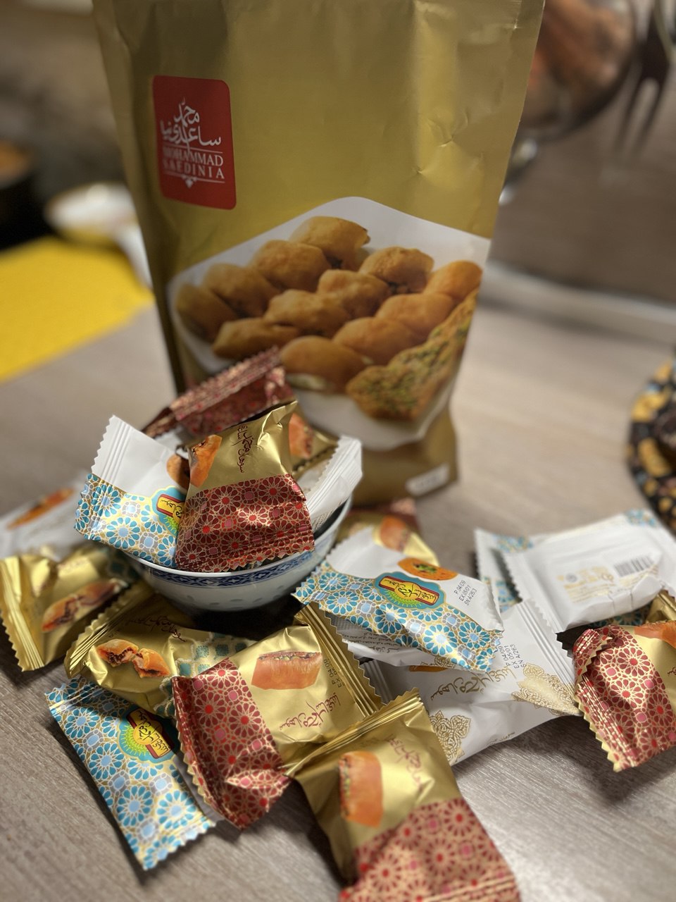 Состав: мука, сливочное масло, яйца, фисташка, миндаль, розовая вода, шафран, какао, кардамон, сахар, лимонная кислота.