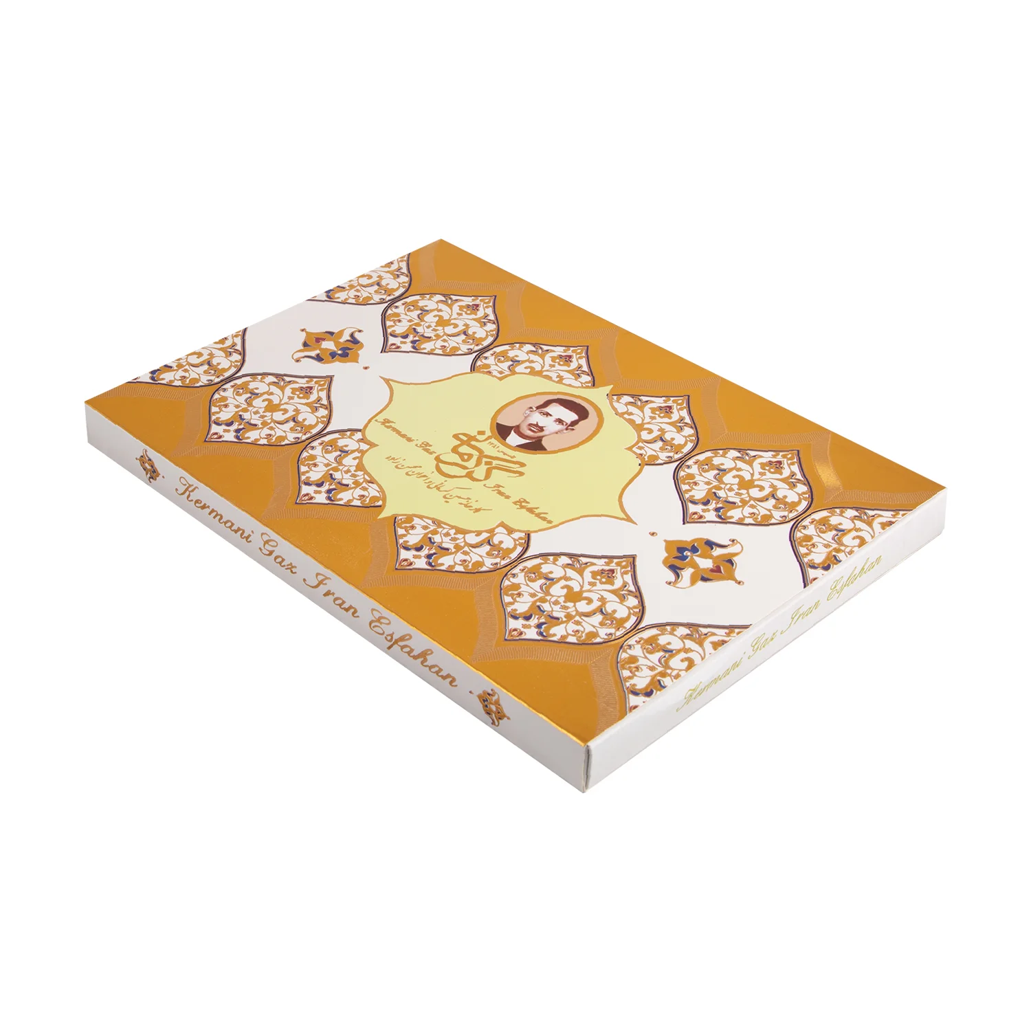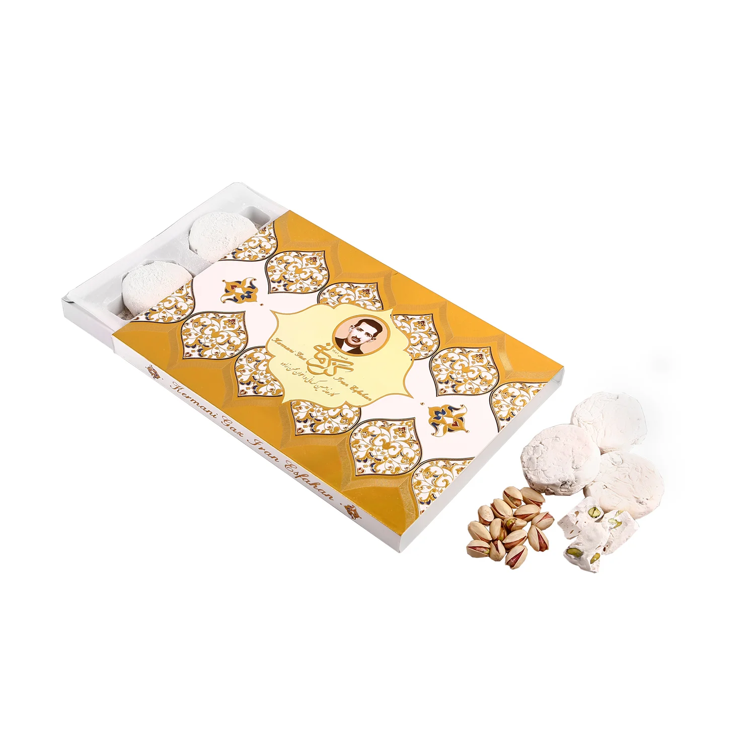 Версия от бренда Kermani содержит 28% отборных фисташек и создана по традиционному рецепту Исфахана — родины настоящего гяза. Эти иранские сладости гяз выбирают те, кто ценит деликатный вкус без излишней приторности. Воздушная нуга с лёгкими нотами розовой воды и ореховым ароматом идеально сочетается с чёрным чаем, кофе и даже с бокалом несладкого вина.