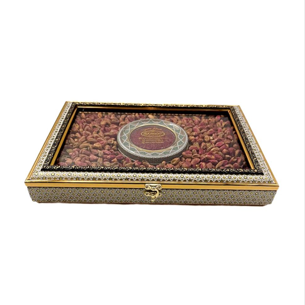 Очищенные иранские фисташки обладают мягкой текстурой и насыщенным ореховым вкусом. Они уже готовы к подаче: идеально подходят для чаепития, десертов и угощения гостей. Фисташки из Ирана ценятся за природную сладость и высокое качество обработки. Настоящий иранский шафран дополняет набор и делает его более статусным подарком — его используют для чая, риса, десертов и восточных сладостей. Благодаря сочетанию орехов и пряности подарок выглядит особенно аутентично и передаёт атмосферу восточного гостеприимства. Декоративная металлическая шкатулка в технике «хатам» остаётся после использования и может применяться для хранения украшений, сладостей или бытовых мелочей.