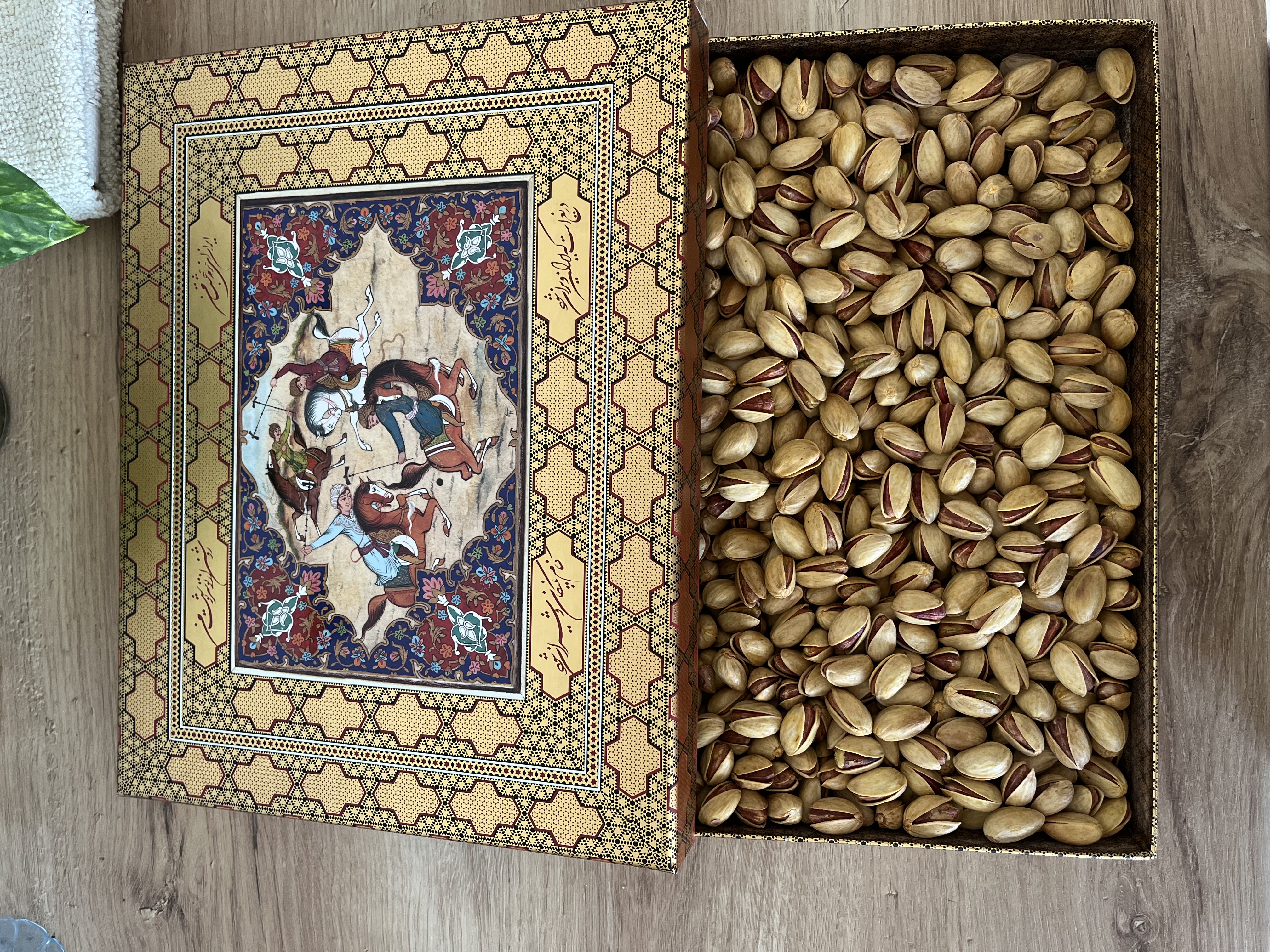 Отдельного внимания заслуживает упаковка. Фисташки поставляются в подарочной коробке с персидской миниатюрой на крышке, что делает продукт готовым подарком — статусным, небанальным и по-настоящему аутентичным. Это тот случай, когда ценность заключается не только во вкусе, но и в подаче.