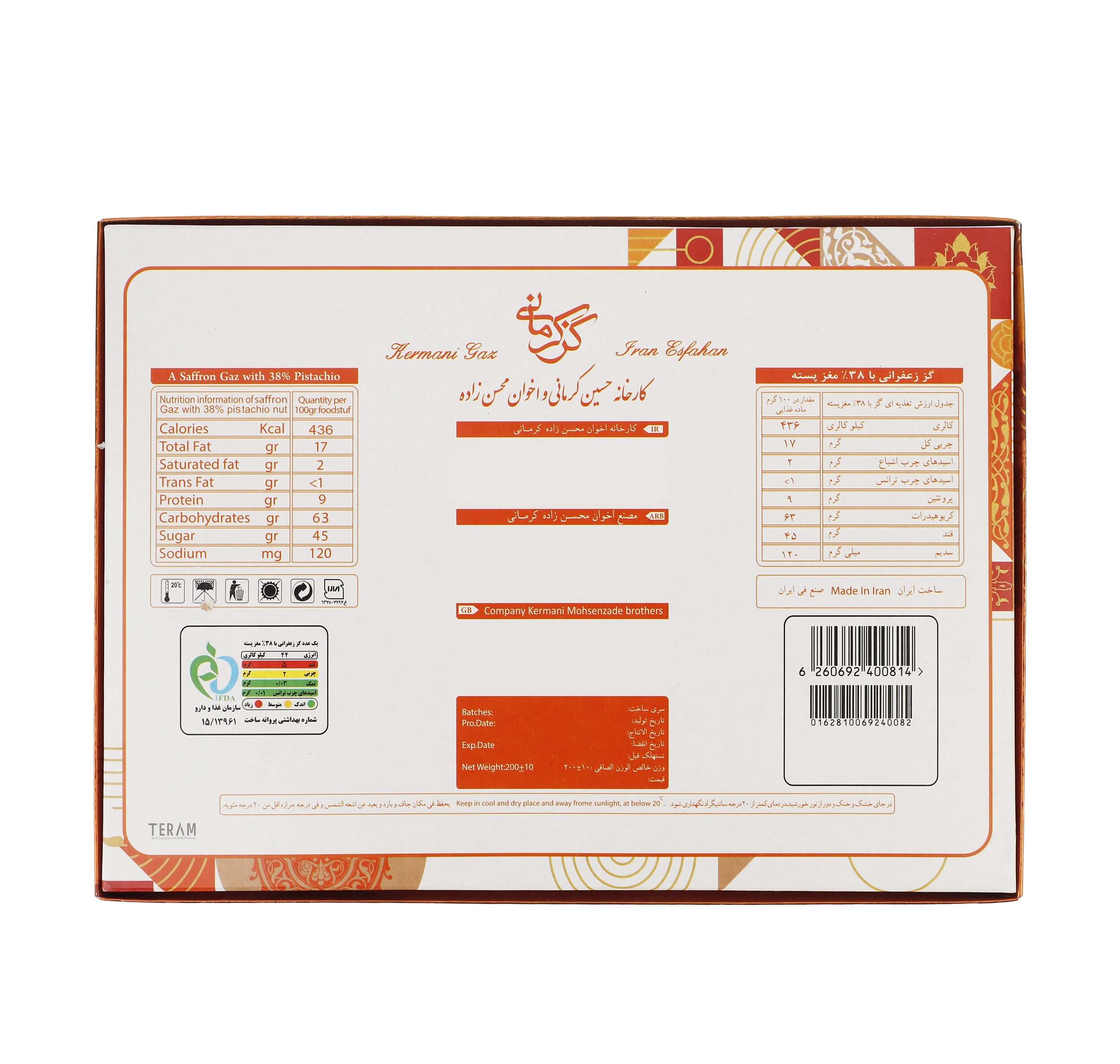 Иранский гяз Кермани фисташки 38% шафрановый 200 гр 20122027 Иран – купить за 1 700 ₽ | IRANMAG - магазин иранских товаров
