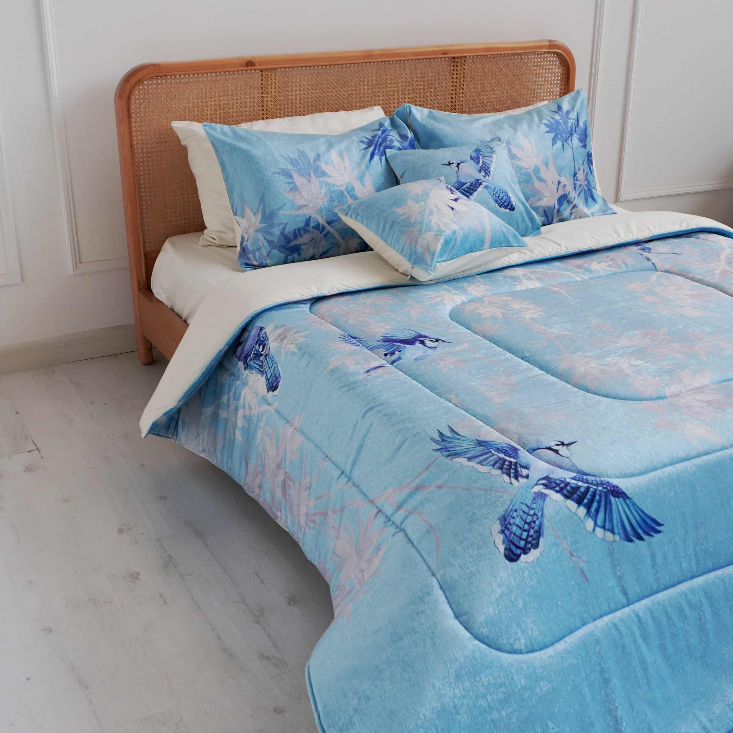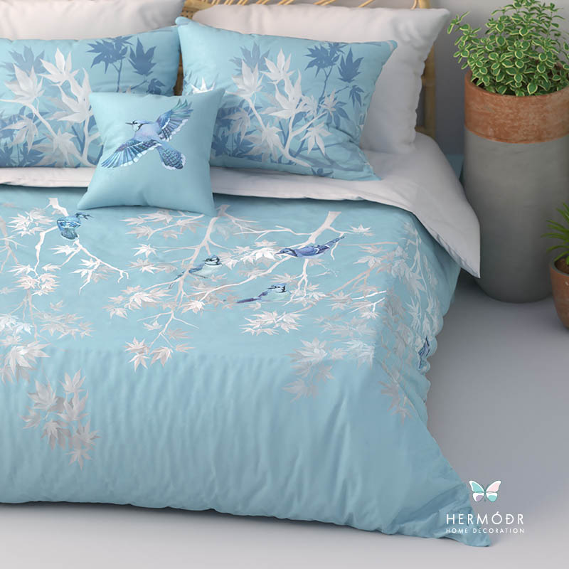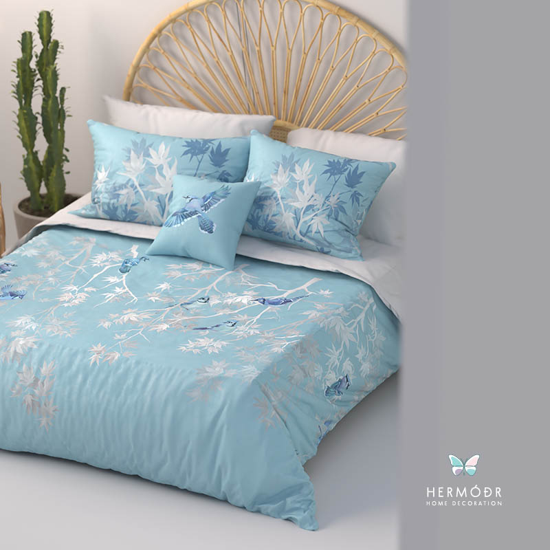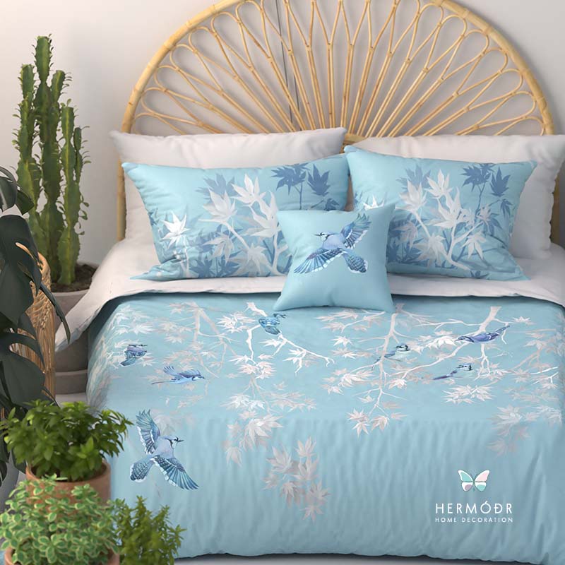 Иранский бархатный комплект постельного белья Afra вдохновлён природным орнаментом кленового сада — спокойный рисунок и мягкая светлая гамма создают ощущение тепла и уюта в спальне. Он легко сочетается с нейтральными интерьерами и добавляет комнате аккуратный декоративный акцент.