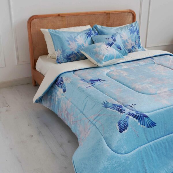 Гипоаллергенный наполнитель с эффектом памяти постепенно расправляется после давления и сохраняет форму. Многослойная простёжка увеличивает срок службы и придаёт изделию аккуратный объёмный вид. Комплект можно использовать как покрывало днём и как одеяло ночью — он рассчитан на постоянную эксплуатацию.