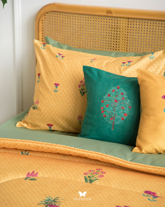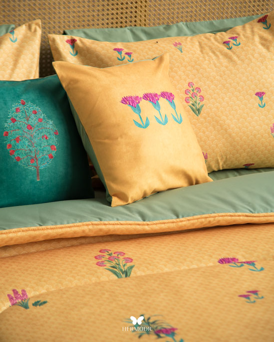 Иранский бархатный комплект постельного белья Chelcheragh вдохновлён классическими восточными орнаментами и создаёт эффект богатого интерьерного текстиля. Рисунок смотрится объёмно и становится акцентом спальни, при этом не перегружая пространство. Верх выполнен из бархата Montreux Velvet — плотного материала с мягким переливом. Внутренняя часть изготовлена из дышащих тканей: органического хлопка или brushed-cotton, поэтому комплект комфортен в любое время года.