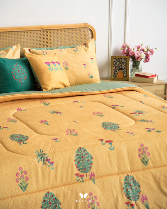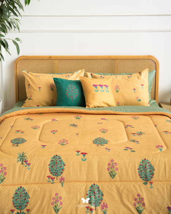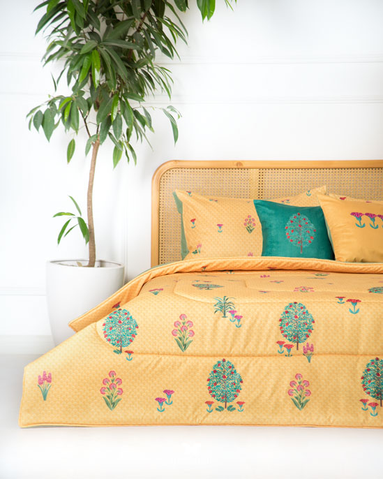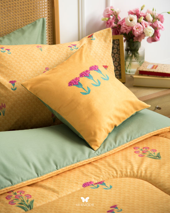 Гипоаллергенный наполнитель с эффектом памяти сохраняет форму после давления, а многослойная простёжка повышает срок службы изделия. Комплект можно использовать как покрывало днём и как одеяло ночью — он рассчитан на ежедневную эксплуатацию.