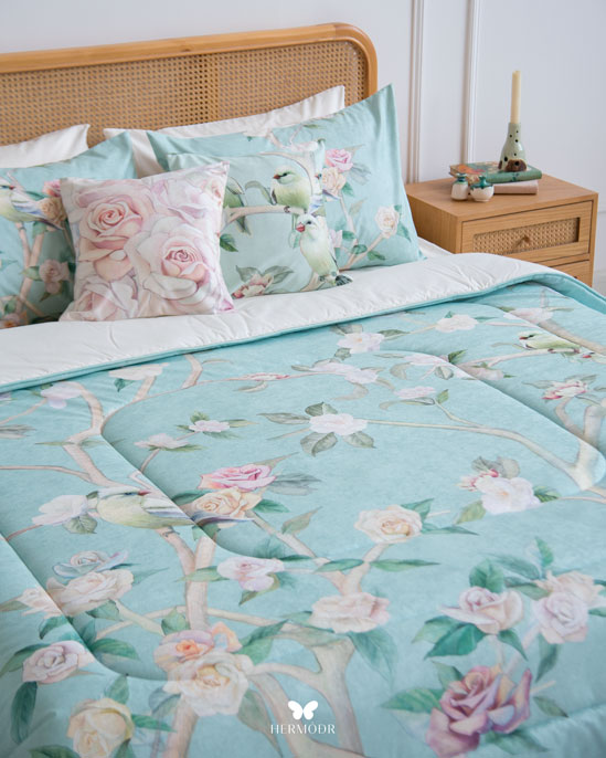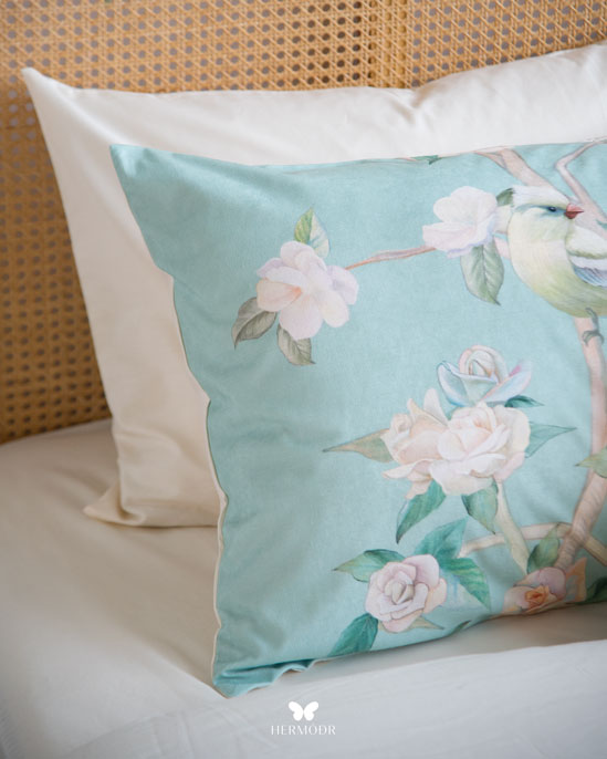 Роскошный комплект постельного белья для спальни из Ирана, созданный в эстетике восточного минимализма. Глубокий спокойный голубой оттенок и художественный орнамент делают комплект акцентным элементом интерьера, но при этом он остаётся мягким и уютным для ежедневного сна.