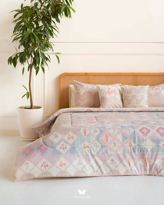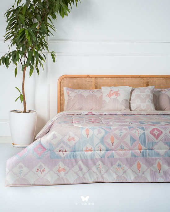 Иранский сатиновый комплект постельного белья Baltoos - двусторонний комплект выполнен из сатина-шелка с мягким блеском и гладкой текстурой. Ткань выглядит аккуратно и создаёт эффект «отельной» кровати, сохраняя комфорт для ежедневного сна. Благодаря защитному слою из органического хлопка необходимость стирки одеяла значительно уменьшается, а уход становится проще. Материал дышащий, гипоаллергенный и приятный к коже. Комплект рассчитан на круглогодичное использование и одновременно выполняет декоративную функцию.