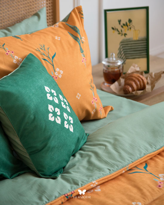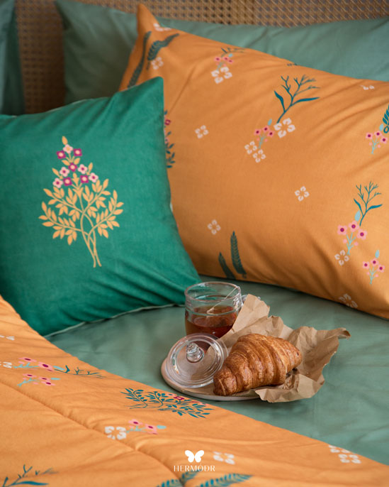 Комплект постельного белья из Ирана, вдохновлённый восточными орнаментами и природной символикой кипариса — дерева спокойствия и гармонии. Название комплекта Sarv Chaman в переводе с персидского языка означает "кипарисовый сад". Орнамент выглядит художественно, но не перегружает интерьер, поэтому комплект легко становится акцентом спальни.