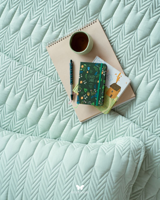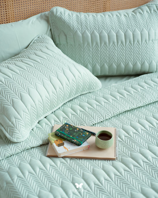 Покрывало выполнено из мягкой brushed-ткани с хлопковой простёжкой. Материал дышит и остаётся комфортным даже в жаркую погоду. Толщина меньше классических одеял, поэтому комплект рассчитан на весну, лето и тёплые помещения. Гипоаллергенный наполнитель с эффектом памяти постепенно расправляется после давления и сохраняет аккуратный внешний вид. Плотная простёжка увеличивает срок службы и предотвращает смещение наполнителя. Комплект можно использовать как лёгкое одеяло ночью и как декоративное покрывало днём.