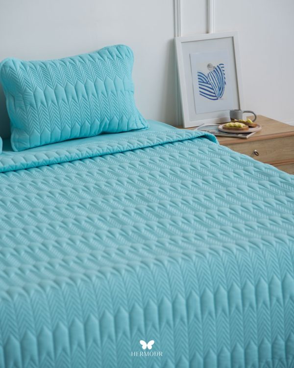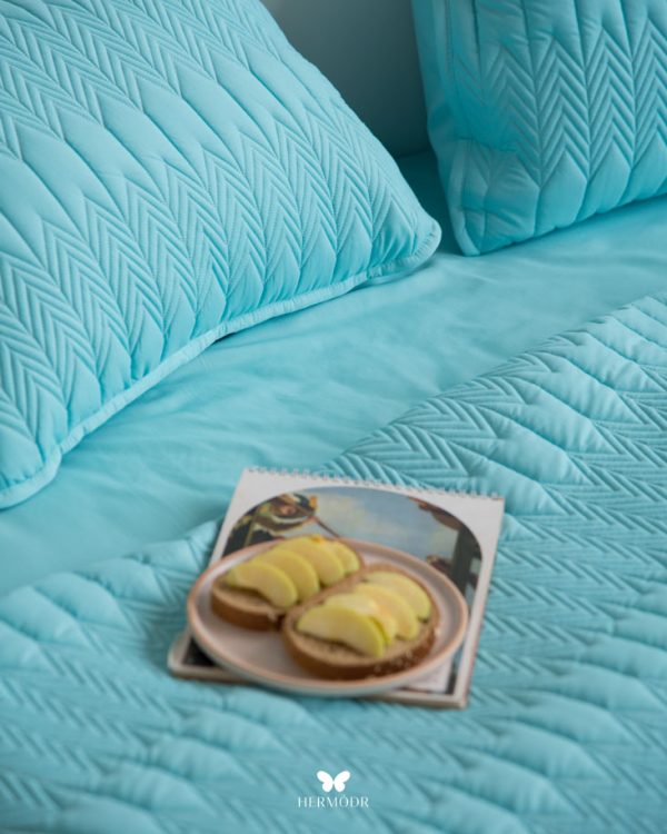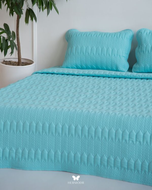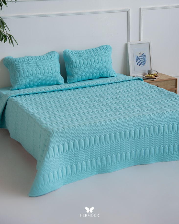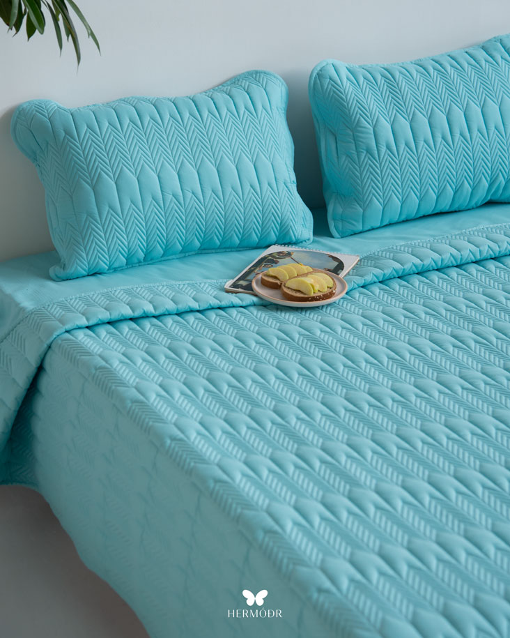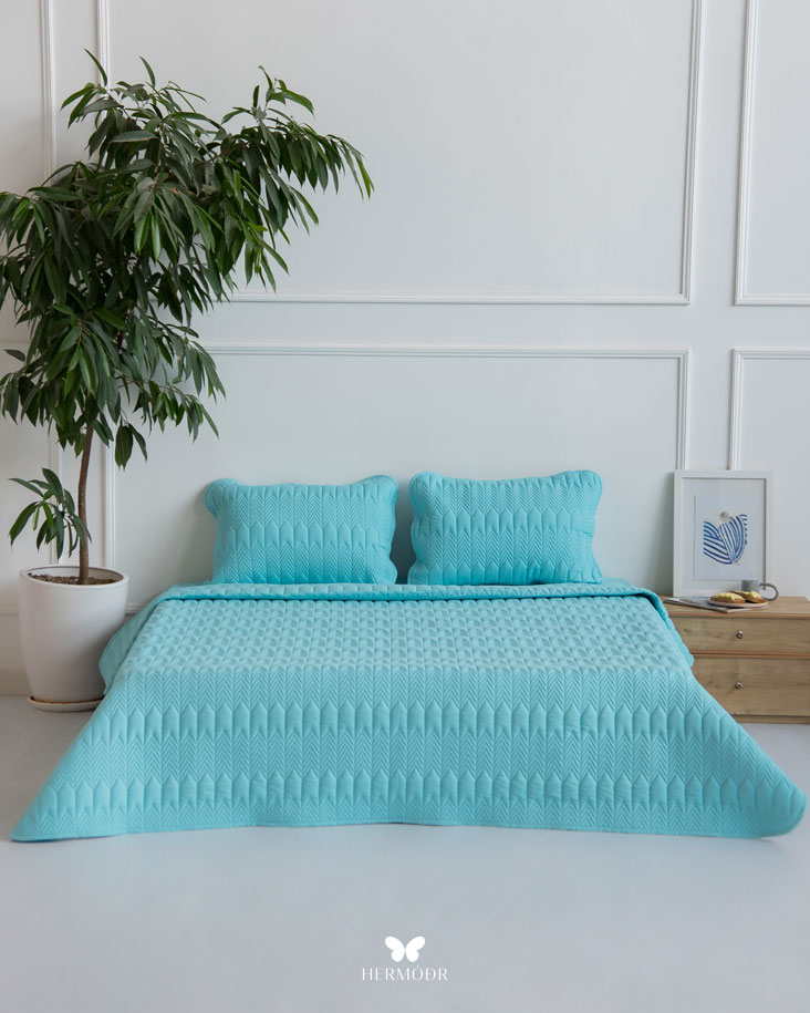 Покрывало изготовлено из натурального хлопка с плотной простёжкой. Материал дышит, хорошо впитывает влагу и остаётся комфортным даже в жаркую погоду. Небольшая толщина делает комплект оптимальным для весны, лета и тёплых помещений. Гипоаллергенный наполнитель сохраняет мягкость после стирок, а аккуратная стёжка предотвращает смещение волокон и увеличивает срок службы изделия. Используется как лёгкое одеяло ночью и как декоративное покрывало днём.