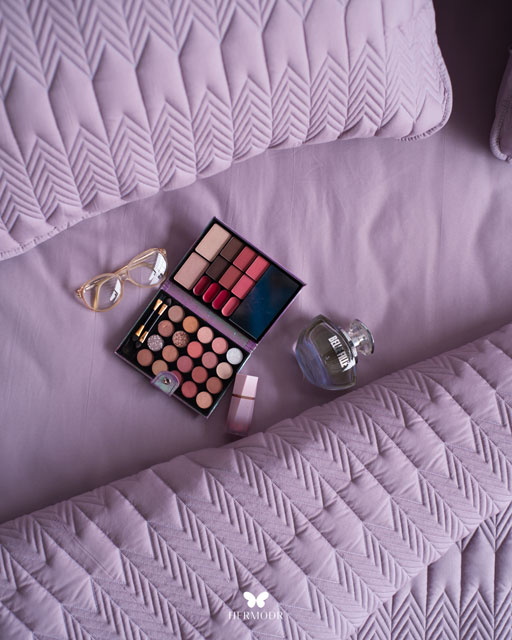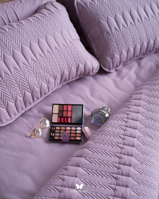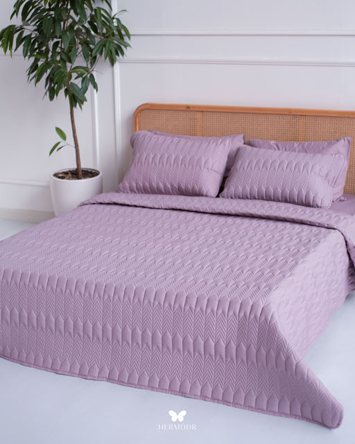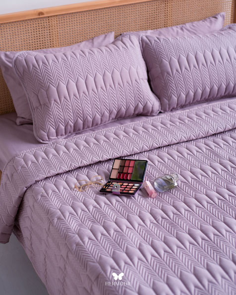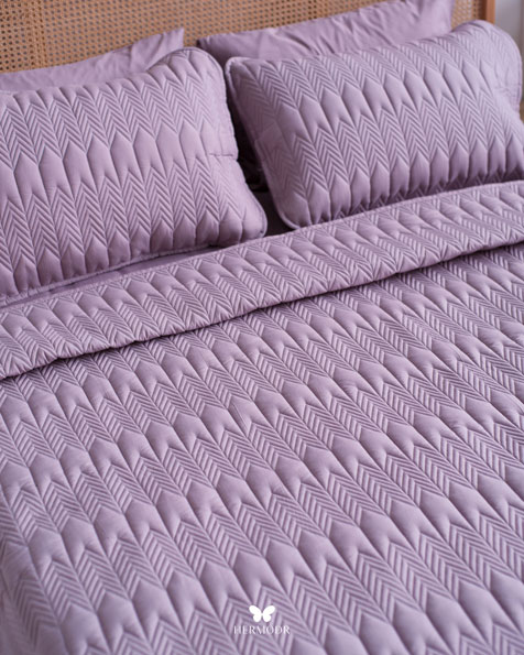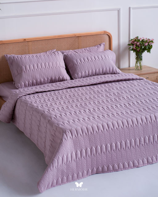 Покрывало выполнено из мягкой brushed-ткани с хлопковой простёжкой. Материал дышит и остаётся комфортным даже в жаркую погоду. Толщина меньше классических одеял, поэтому комплект рассчитан на весну, лето и тёплые помещения. Гипоаллергенный наполнитель с эффектом памяти постепенно расправляется после давления и сохраняет аккуратный внешний вид. Плотная простёжка увеличивает срок службы и предотвращает смещение наполнителя.