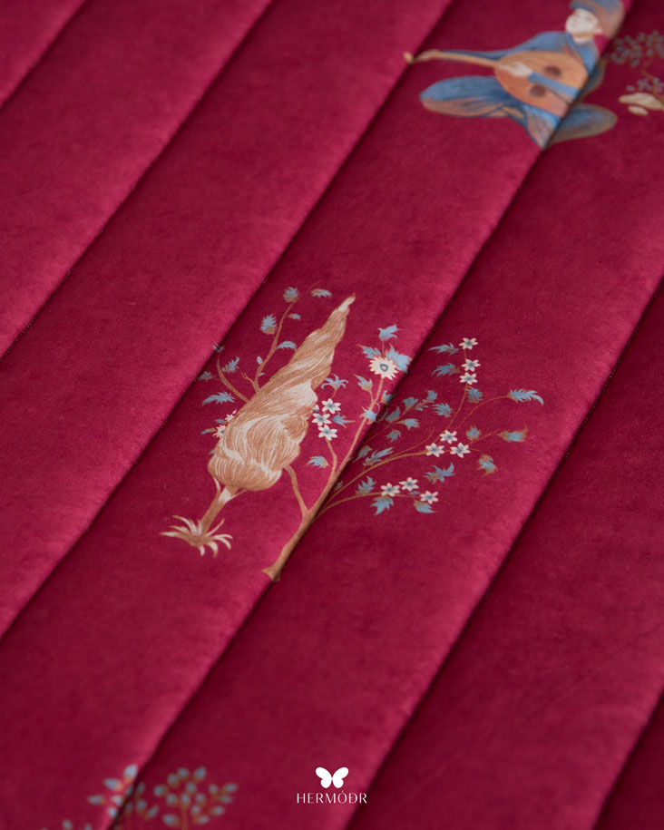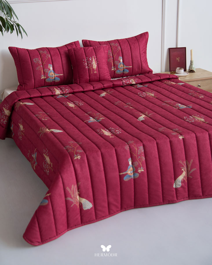 Покрывало изготовлено из бархата Montreux Velvet с внутренним слоем из мягкой brushed-ткани. Благодаря небольшой толщине оно остаётся лёгким и воздухопроницаемым, поэтому комфортно даже в жаркую погоду. Гипоаллергенный наполнитель постепенно расправляется после давления, а плотная стёжка предотвращает смещение волокон и увеличивает срок службы изделия. Можно использовать как лёгкое одеяло ночью и как декоративное покрывало днём.