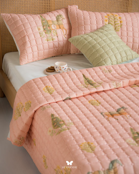 Гипоаллергенный наполнитель с эффектом памяти постепенно расправляется после давления, а плотная стёжка предотвращает смещение волокон и сохраняет аккуратный внешний вид. Можно использовать как лёгкое одеяло ночью и как декоративное покрывало днём.