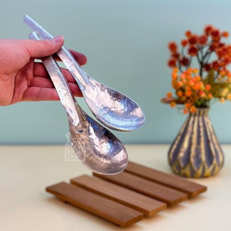 Медная ложка с оловянным покрытием изготовлена вручную методом чеканки, благодаря чему каждая поверхность имеет уникальный рисунок и живую фактуру. Тёплый благородный блеск меди создаёт ощущение уюта и аутентичности, которое так ценят любители восточной культуры. Ложка удобна для подачи плова, салатов, соусов, сладостей и орехов. Она прекрасно сочетается с медными блюдами и подносами, дополняя сервировку в персидском стиле.