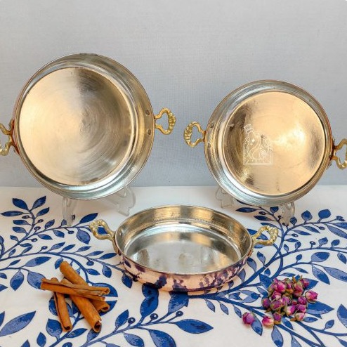 Изящная форма с невысокими бортиками и удобными латунными ручками делает эту сковороду не только функциональной, но и невероятно красивой. Ее можно использовать как для готовки, так и для эффектной подачи блюд на стол — плова, овощей, восточных закусок или ароматных сладостей.
