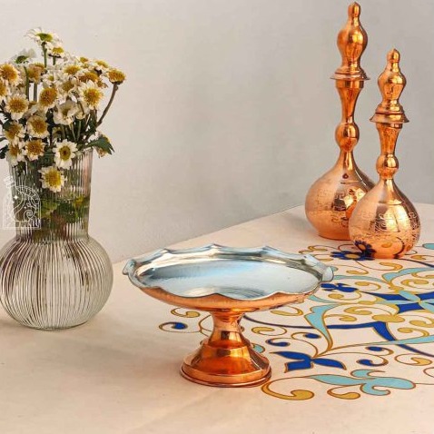 Изделие станет стильным акцентом на кухне, в гостиной или в чайной зоне. Его можно использовать для праздничной подачи восточных сладостей, фиников, рахат-лукума или свежих фруктов. Такая посуда из Ирана прекрасно сочетается с керамикой, стеклом и текстилем в этническом стиле.