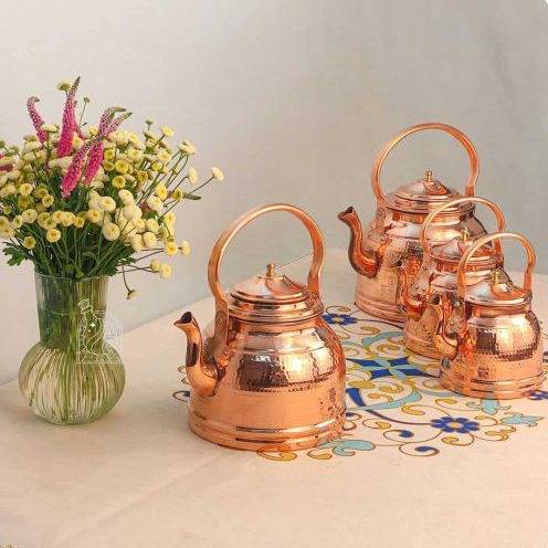 Медный чайник выполнен иранскими мастерами вручную: гладкие линии корпуса, аккуратный носик и изящная крышка создают гармоничный образ, который одинаково уместен и на праздничном столе, и в уютной домашней чайной церемонии.