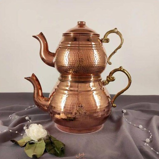 Перед вами настоящий символ восточной чайной культуры — двойной медный чайник ручной работы, созданный иранскими мастерами по старинным технологиям. Конструкция из двух ярусов позволяет одновременно кипятить воду и настаивать ароматный чай, сохраняя идеальный баланс вкуса и температуры. Такой формат веками использовался в Иране и Турции для неспешных семейных чаепитий.