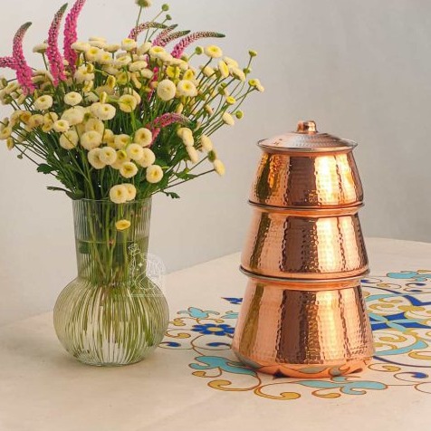 Такой предмет может стать оригинальным подарком ценителям культуры Востока и тем, кто любит красивую и долговечную посуду из меди. Это не просто утварь, а маленькая часть Ирана у вас дома — с его традициями, ароматами и неспешным ритмом жизни.