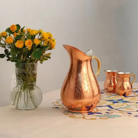 Иранская посуда ценится за долговечность, ручную работу и особое отношение к материалу. Со временем медь приобретает благородную патину, усиливая ощущение подлинности и «возраста» вещи. Именно поэтому посуда из Ирана часто становится не просто утварью, а предметом с историей. Этот медный кувшин станет достойным выбором для дома, а также эффектным и небанальным подарком — тёплым, статусным и вне времени.