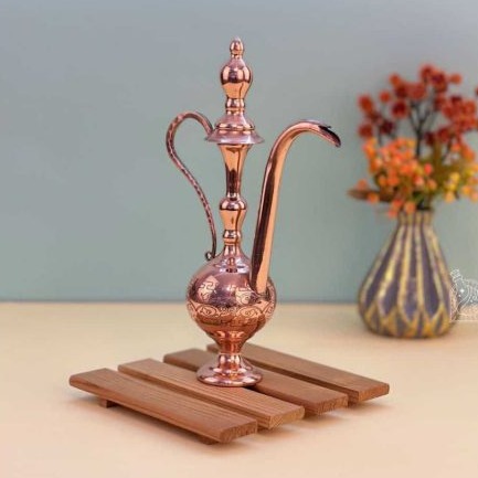 Этот кувшин из меди прекрасно подойдёт для сервировки воды, использования в восточном интерьере или в качестве статусного подарка. Подлинная посуда из Ирана ценится за долговечность, тепло материала и способность красиво стареть — со временем медь приобретает благородную патину, усиливая ощущение истории и ручного труда.Если вы ищете иранскую посуду, которая будет говорить о вкусе, интересе к культуре и любви к настоящим ремесленным вещам, этот медный кувшин станет точным и достойным выбором.