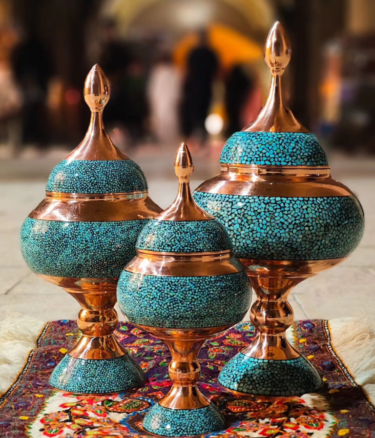 Размеры: 36x36x38 сантиметров Вес: 2430 грамм Место производства: Исфахан Тип обработки: Гравировка Дополнительная информация: Размер подноса: Диаметр: 36 см, высота: 3 см, вес: 990 г Размер кувшина: Высота: 37 см, диаметр: 11 см, вес: 553 г Размер каждого стакана: Высота: 16 см, диаметр: 7 см, вес: 148 г