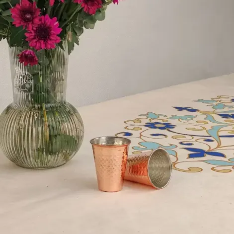 Медный стакан ручной работы — прикосновение к подлинной культуре Востока Этот медный стакан — не просто посуда, а маленький предмет искусства, созданный иранскими мастерами с любовью к традициям. Благородная медь с деликатной чеканкой выглядит стильно и аутентично, а внутреннее оловянное покрытие обеспечивает гигиеничность и чистоту вкуса. Медная посуда издавна ценится за свои природные свойства: вода в ней дольше остается прохладной, а напитки приобретают мягкость и особое звучание. Такой стакан идеально подойдет для ежедневного использования, сервировки стола в восточном стиле или в качестве оригинального подарка. Преимущества: 100% ручная работа из качественной меди; традиционное оловянное покрытие внутри; удобная форма и легкий вес; экологичная и долговечная посуда; подлинное изделие иранских ремесленников. Медный стакан станет красивым акцентом на кухне, дополнит чайную церемонию или коллекцию восточной утвари. Это вещь с характером, которая будет радовать вас долгие годы. Характеристики: Вес: 30 грамм Ширина: 4,5 см Высота: 6 см