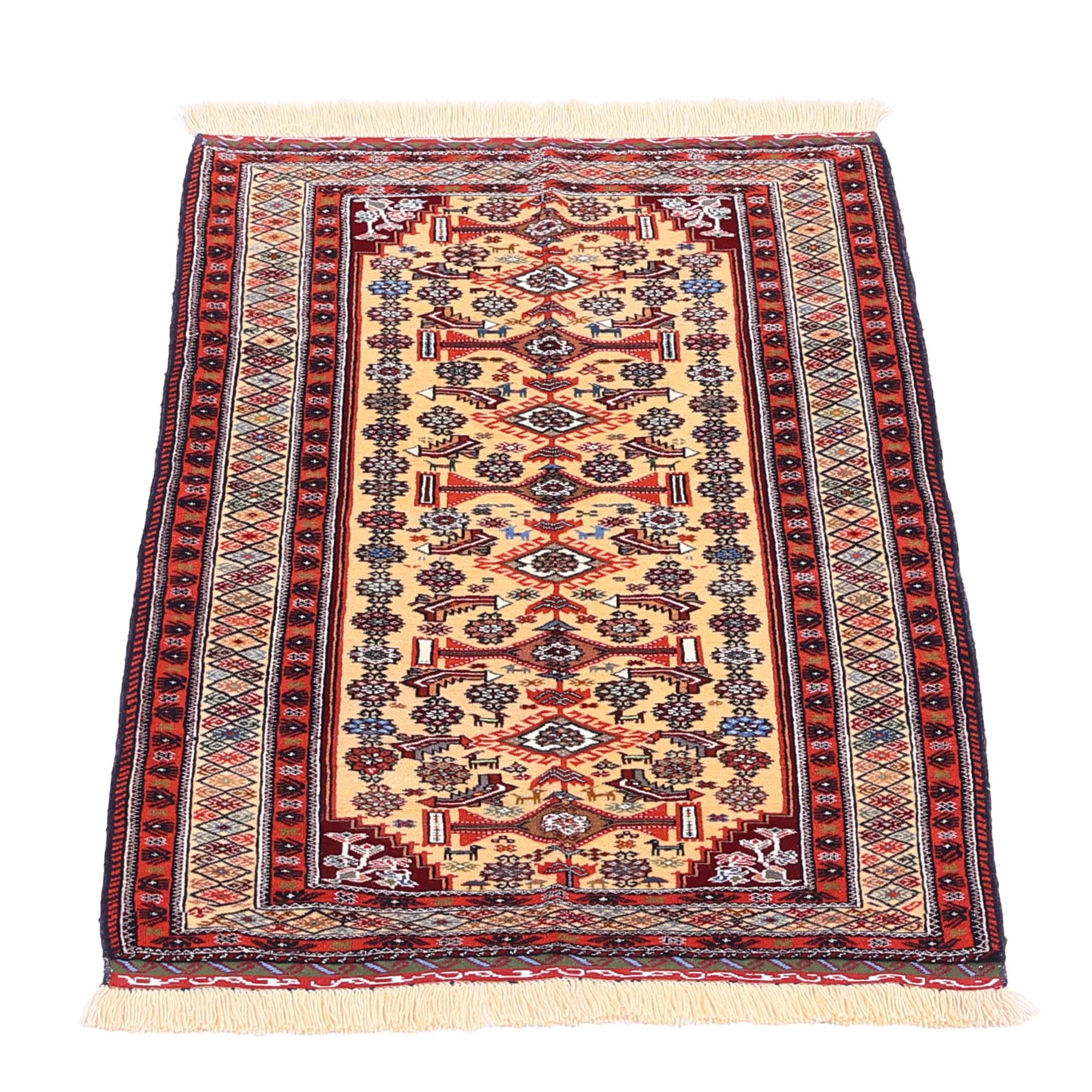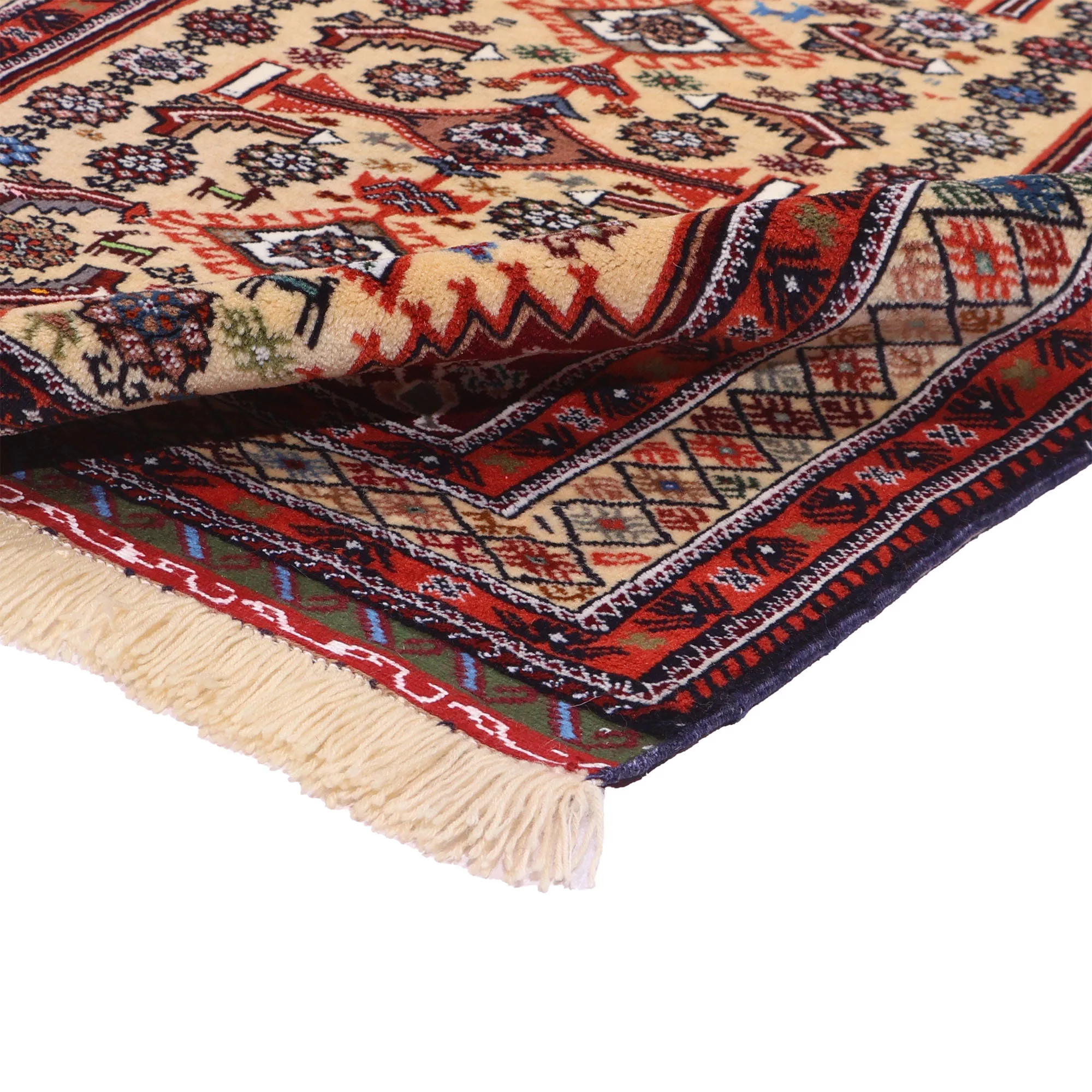 И ещё деталь, которую ценят “знающие”: у белуджей нередко заметны удлинённые тканые окончания/«фартуки» (flatwoven ends) и декоративные полосы на концах — конструктивно и визуально это отличает их от многих других типов кочевых ковров.
