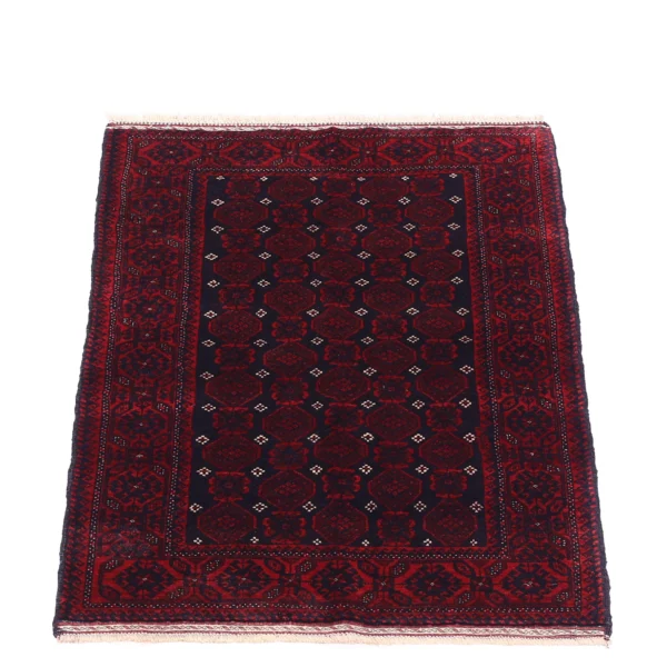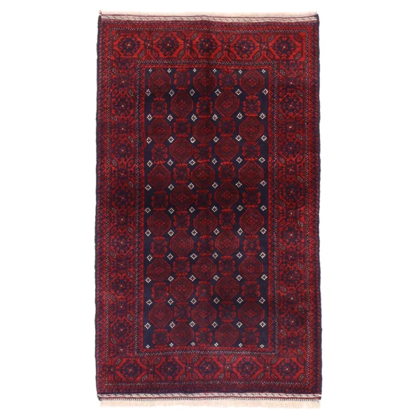 У белуджей очень характерна любовь к геометрии с символической нагрузкой. Часто встречаются квадратные решётки и повторяющиеся «ячейки» — тот самый этнический ритм, который делает белуджские ковры невероятно «дизайнерскими» в современном интерьере: они задают порядок, но не выглядят скучно.
