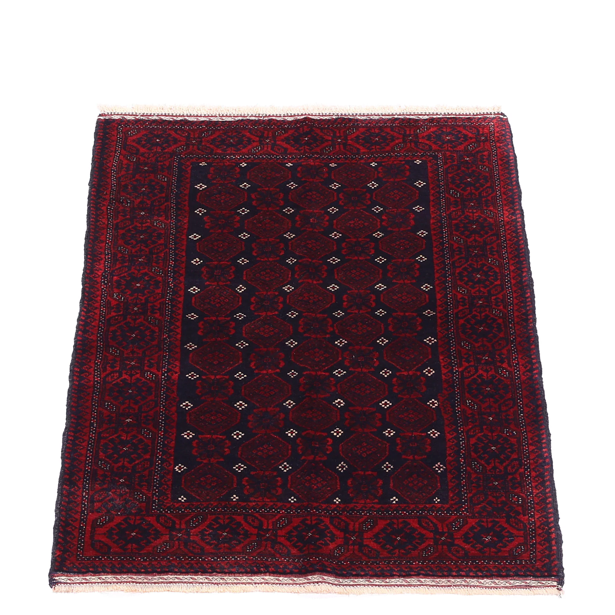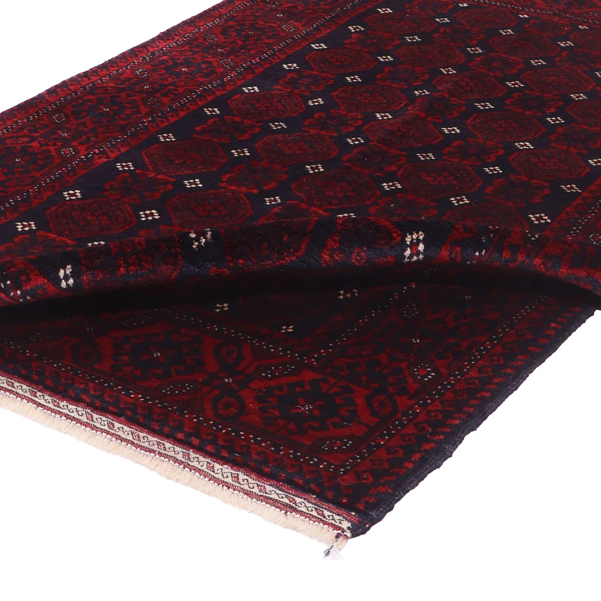 У белуджей почти всегда чувствуется строгость и собранность рисунка. Если кашкайские ковры часто звучат как живой дневник кочевой жизни — с более свободной композицией и фигуративными мотивами (животные, птицы, деревья), то белуджский орнамент обычно более “архитектурный” и графичный: повторяющиеся ромбы, ступенчатые формы, сетки, маленькие медальоны, ритмические “пульсации” узора. Ещё одно важное отличие — формат. Белуджские ковры нередко встречаются в сравнительно компактных размерах и в форматах, близких к молитвенным (с нишей-меһрабом), что исторически связано с бытом и мобильностью кочевого уклада.