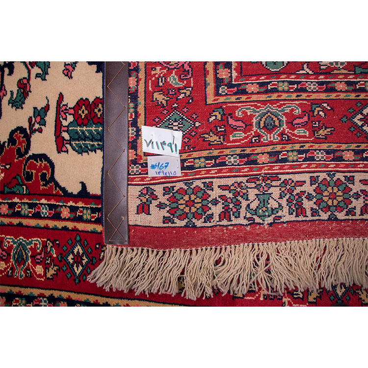 Перед вами — персидский шерстяной ковер формата около 3 метров из Хорасана (Джергелен), с шелковой основой и шелковыми деталями в рисунке (челе и «гол» из шелка). Такое сочетание придаёт ковру дополнительную глубину и благородный блеск, сохраняя при этом прочность и долговечность.