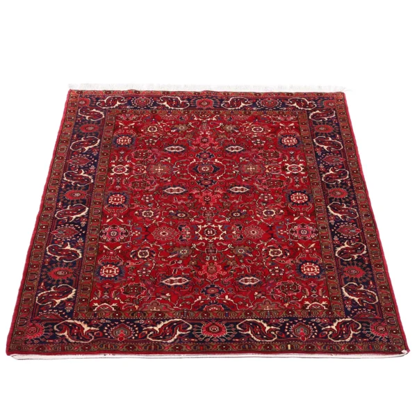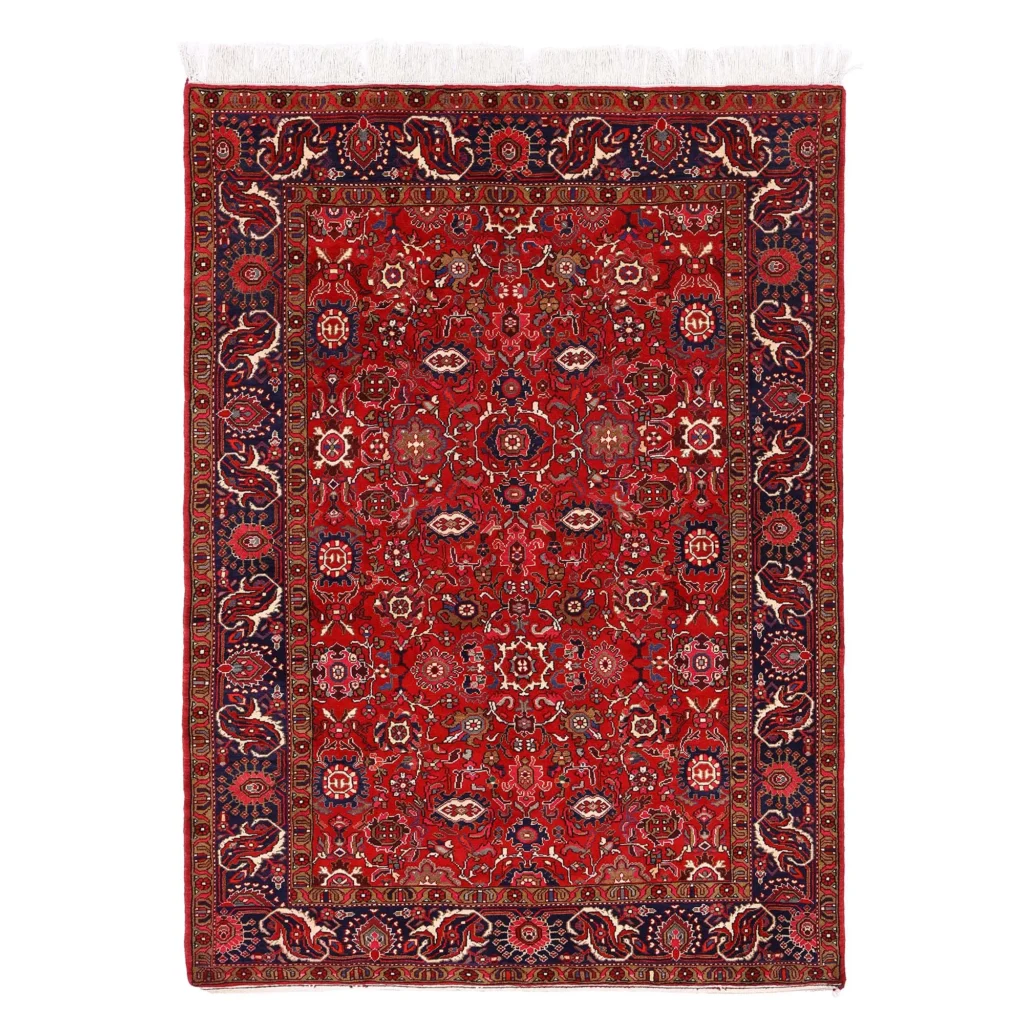 Этот персидский ковер ручной работы — прекрасный пример исконного иранского ремесла: сочетание классической палитры, гармоничных геометрических мотивов и насыщенного, тёплого красного фона делает его выразительным акцентом в интерьере. Иранские ковры с такими пропорциями идеально работают в пространстве, где важна глубина цвета и тактильность натуральной шерсти.