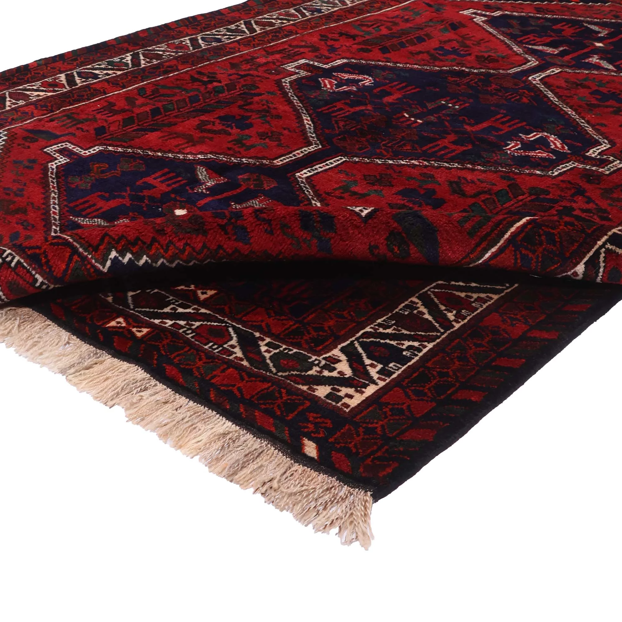 Каждый персидский ковер Кашкай уникален: ручная работа делает его неповторимым, с лёгкой асимметрией и характерной плотностью узла. Это не фабричный декор, а предмет с душой.