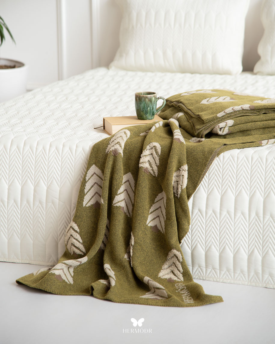 Иранский плед Amber в насыщенном оливковом оттенке добавляет интерьеру тепло и глубину. Он создаёт уютный акцент на диване или в изножье кровати и легко оживляет даже нейтральный интерьер.