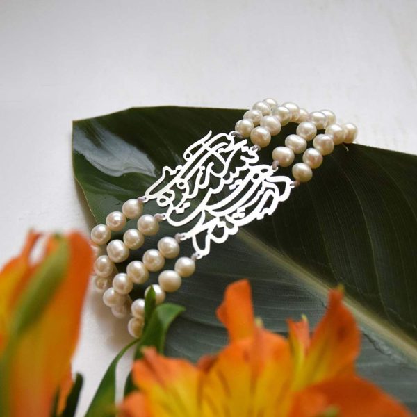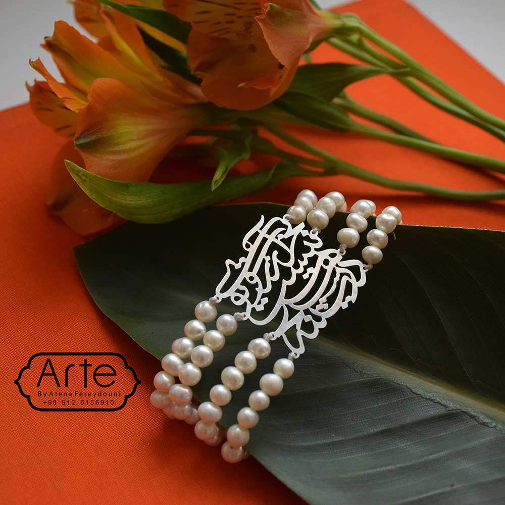 Серебряный браслет Dar Sineh Cpehich Nist Jaz Arzevi To с каллиграфической вставкой на персидском языке, что в переводе означает «В моей груди нет иного желания, чем ты». Строка любви, запечатленная в серебре и жемчуге.