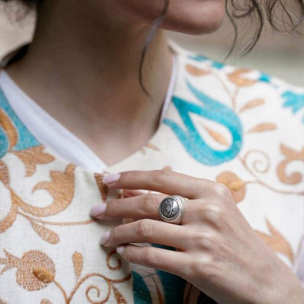 Это кольцо в персидском стиле станет прекрасным подарком женщине, которая ценит эстетическую глубину и эмоциональную выразительность в украшениях. Оно добавляет образу мягкую уверенность, мы прекрасно сочетается с разными элементами гардероба и остаётся заметным аксессуаром, который хочется носить снова и снова.