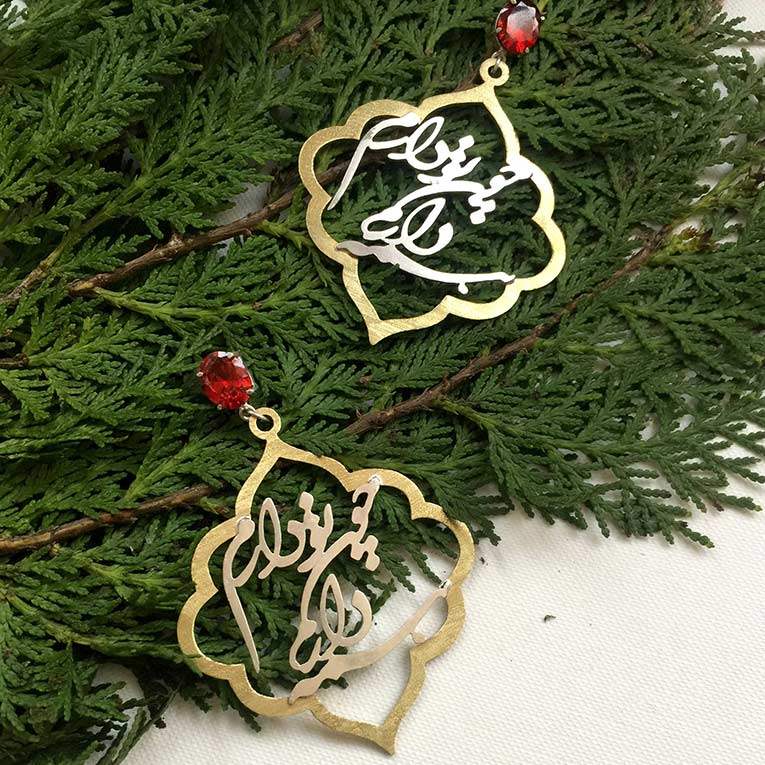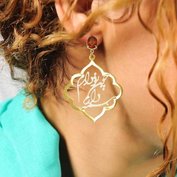 Серьги из серебра с каллиграфической вставкой Chon To Daram Cpehmeh Daram, что в переводе с персидского означает «Когда есть ты, у меня есть всё». Слияние поэзии и искусства: ваше совершенное признание в серебре и золоте. Это ювелирное воплощение самой глубокой и полноценной формы любви. Этот дизайн, созданный для истинных ценительниц уникального, сочетает в себе изящество персидской каллиграфии, богатство исламского орнамента и безупречное мастерство, чтобы стать вашим самым выразительным аксессуаром.