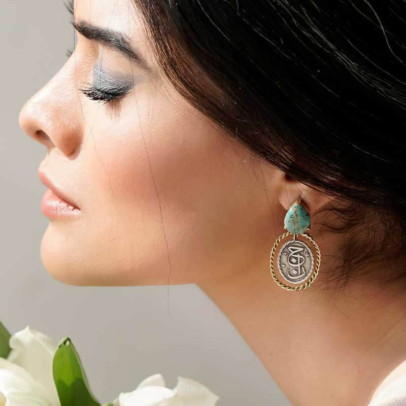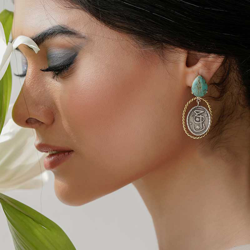 Название «Abi Bi Payan» переводится как «необъятный голубой», и эта метафора прекрасно отражает характер серьг — они словно приглашение взглянуть на мир шире, мягко подчёркивая индивидуальность. Эти персидские украшения одинаково украсят как повседневный лук, так и вечерний ансамбль, создавая эффект гармонии и лёгкого сияния. Бирюза в серебре усиливает визуальное восприятие, делая серьги выразительным, но не навязчивым акцентом.