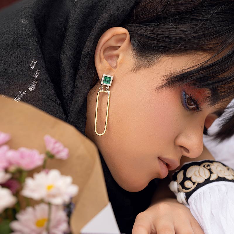 - натуральный малахит — природная глубина цвета и узоры, которые делают каждую пару уникальной;