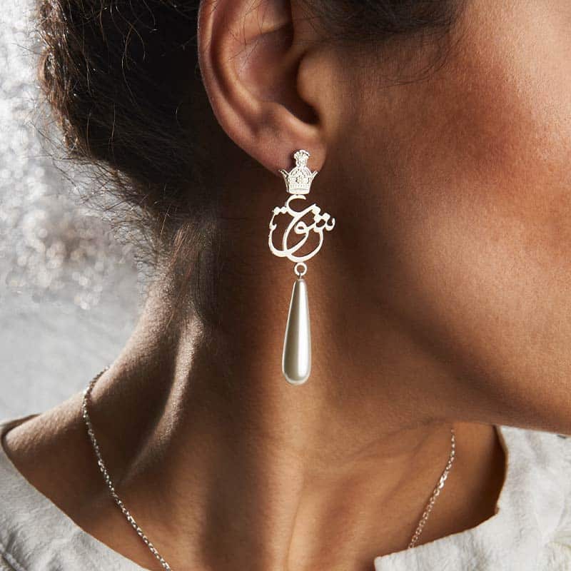 Центральный мотив оформлен в виде каллиграфического орнамента, в котором спрятано слово «любовь» — художественное решение, характерное для персидских украшений, где каждая деталь несёт эмоциональный оттенок. В ансамбле эти серьги способны подчеркнуть женственность, сделать образ более глубоким и выразительным. Модель Parto Eshg особенно гармонично смотрится с причёской, открывающей линию шеи, и с нарядами в светлых или насыщенных оттенках, создавая живой визуальный эффект.