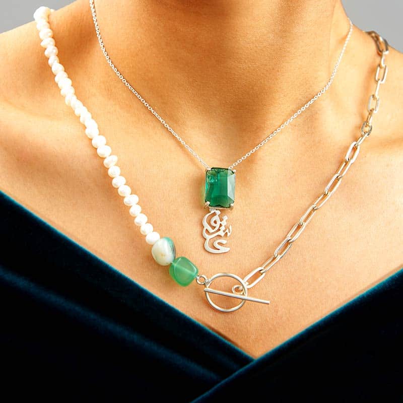 Лаконичная серебряная цепочка длиной около 50 см создаёт элегантную композицию, которая подчёркивает линию шеи и гармонично вписывается как в повседневные, так и в праздничные образы. Такое украшение Ирана подходит женщинам с разным стилем — от минимализма до классики — и усиливает визуальную выразительность благодаря контрасту серебряного блеска и глубокого зелёного оттенка.