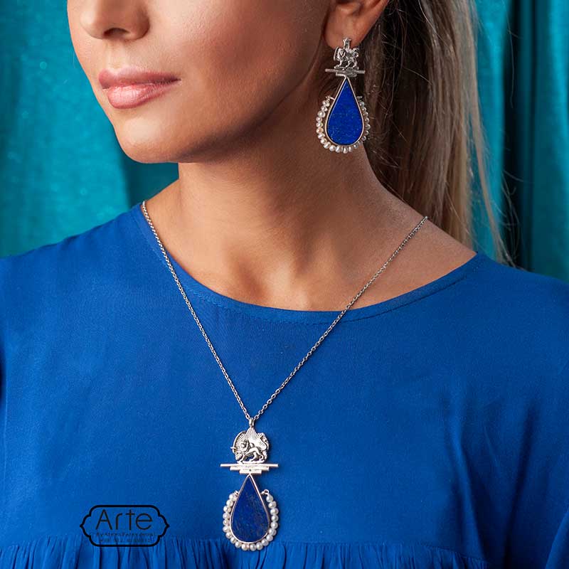 Лазурит традиционно ассоциируется с мудростью, спокойствием и внутренней силой — качества, которые особенно ценятся в персидские украшения. Этот кулон станет выразительным акцентом в образе женщины, стремящейся к гармонии между внутренним состоянием и внешним видом: он одинаково органично вписывается в как повседневный, так и вечерний ансамбль, подчёркивая утончённость вкуса и эстетическую глубину.