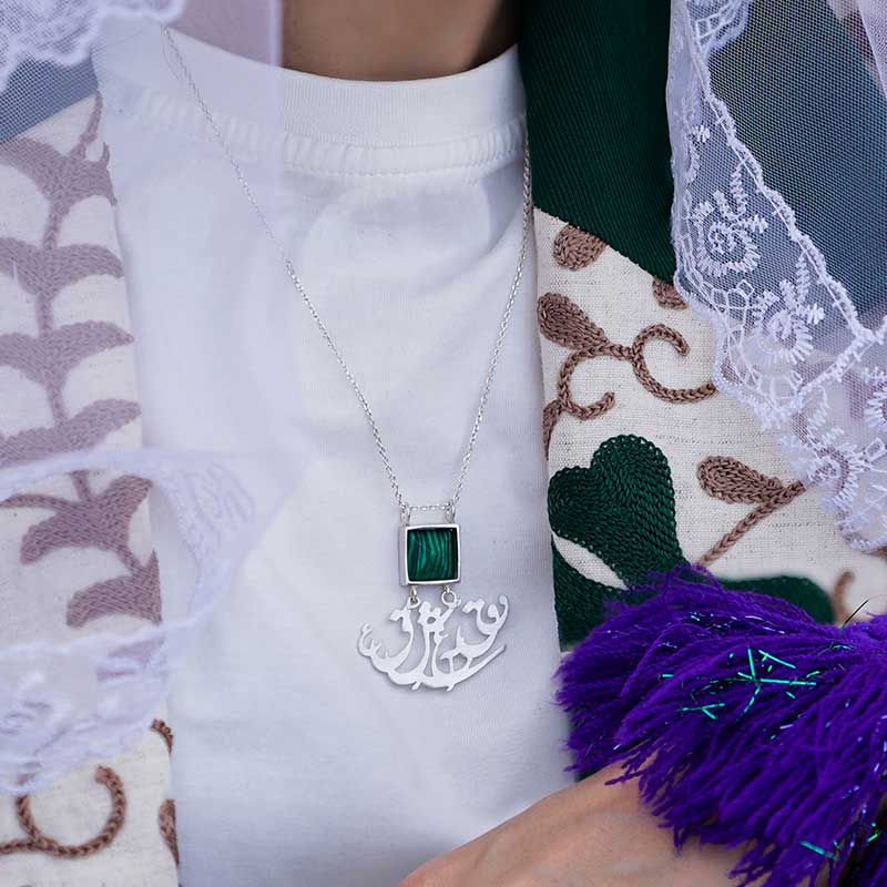 Тонкие линии серебряной основы, окутывающие насыщенный зелёный камень, создают ощущение гармонии и лёгкости, будто природа сама задумала этот аксессуар. Кулон становится выразительным акцентом персидские украшения, который одинаково хорошо смотрится и в повседневном стиле, и в вечернем ансамбле. Его художественный характер делает его эмоциональным элементом вашего гардероба: он визуально раскрывает глубину настроения и подчеркивает индивидуальность женщины, выбирающей стильная бижутерия с характером.