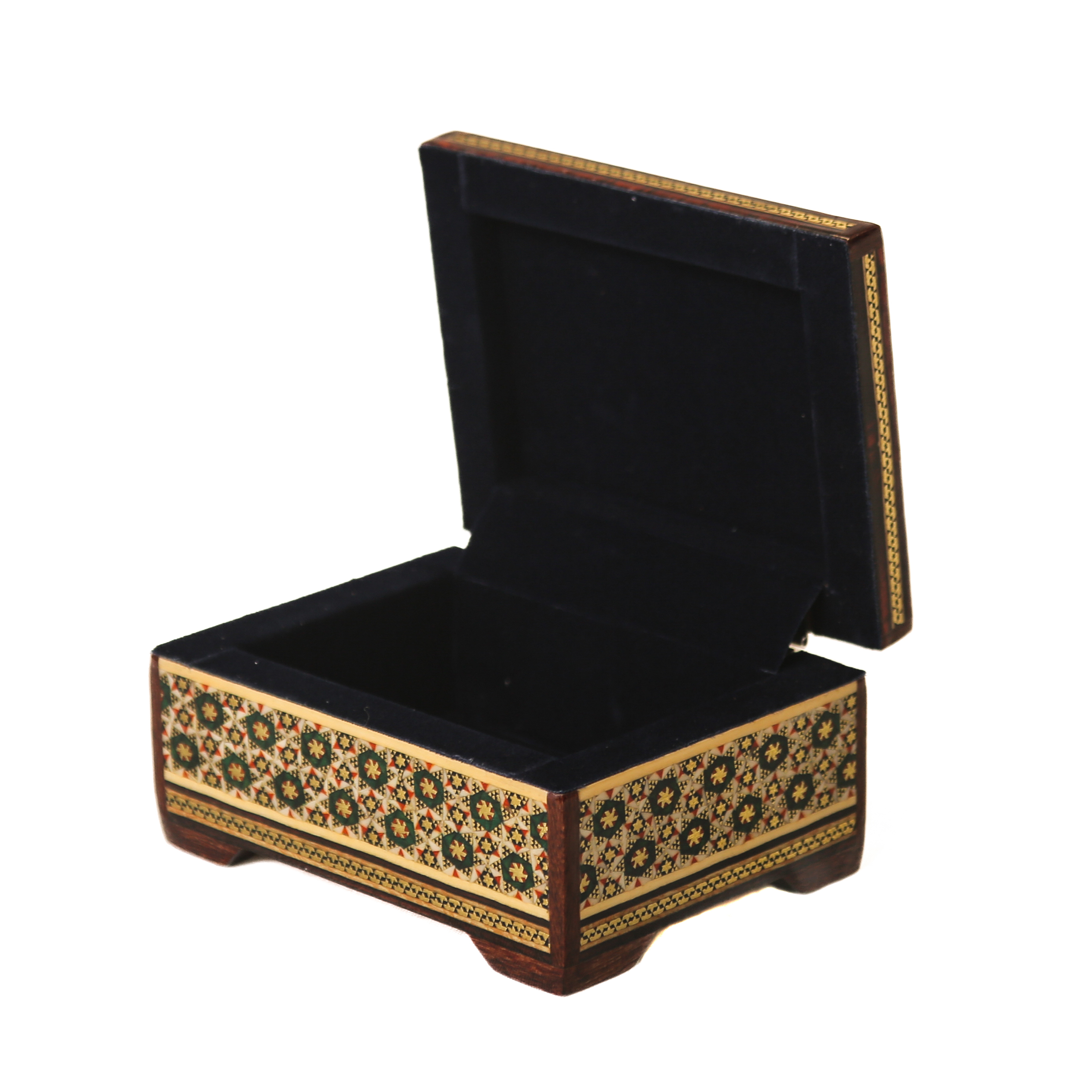 Эта шкатулка — настоящий пример искусства хатамкари / хатам кари, одного из самых изысканных народных промыслов Ирана. Созданная вручную в городе Исфахан, она сочетает мастерство, традицию и утонченный дизайн, превращая каждую деталь в живую историю.