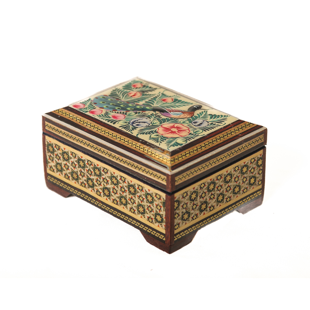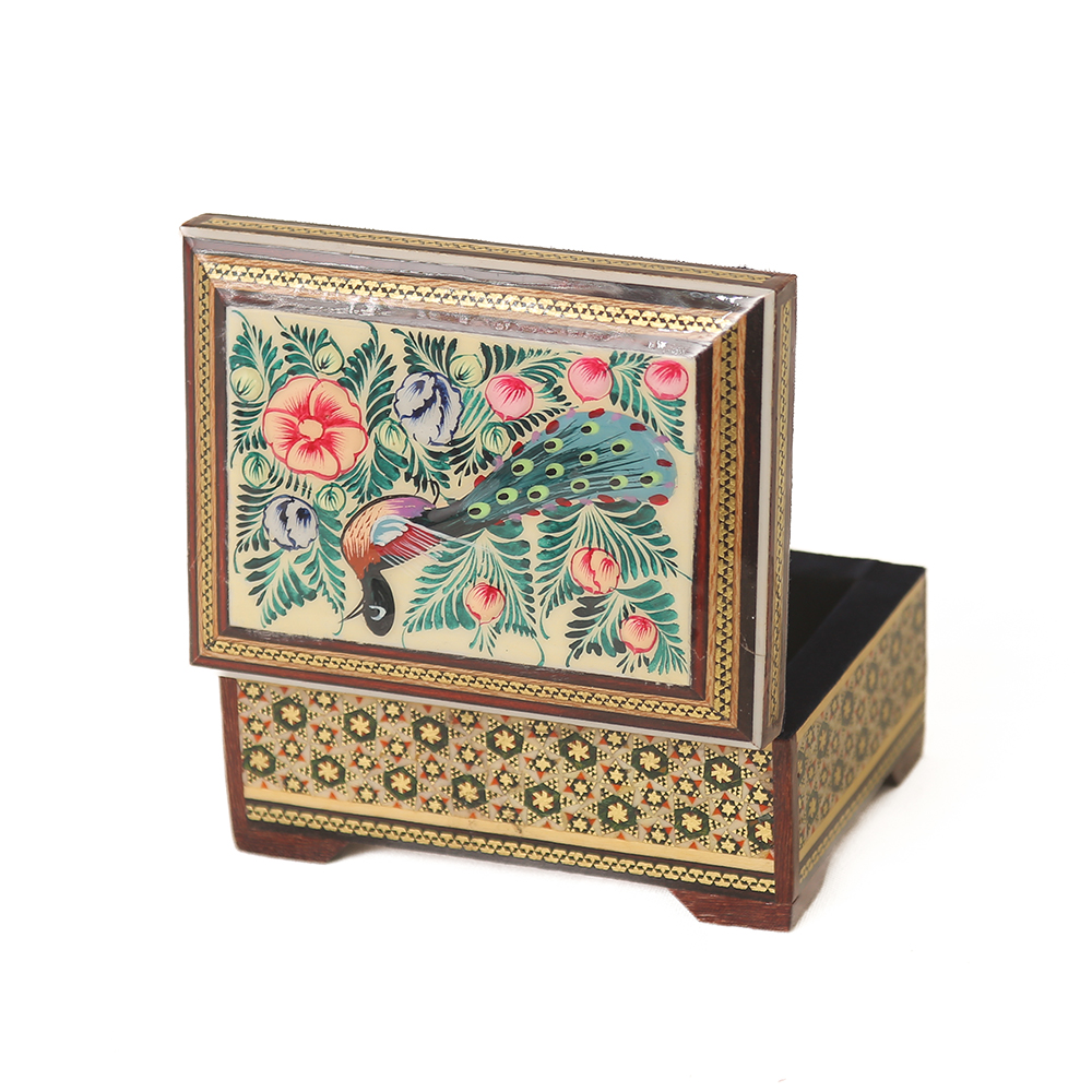 Эта шкатулка — настоящий пример искусства хатамкари / хатам кари, одного из самых изысканных народных промыслов Ирана. Созданная вручную в городе Исфахан, она сочетает мастерство, традицию и утонченный дизайн, превращая каждую деталь в живую историю.