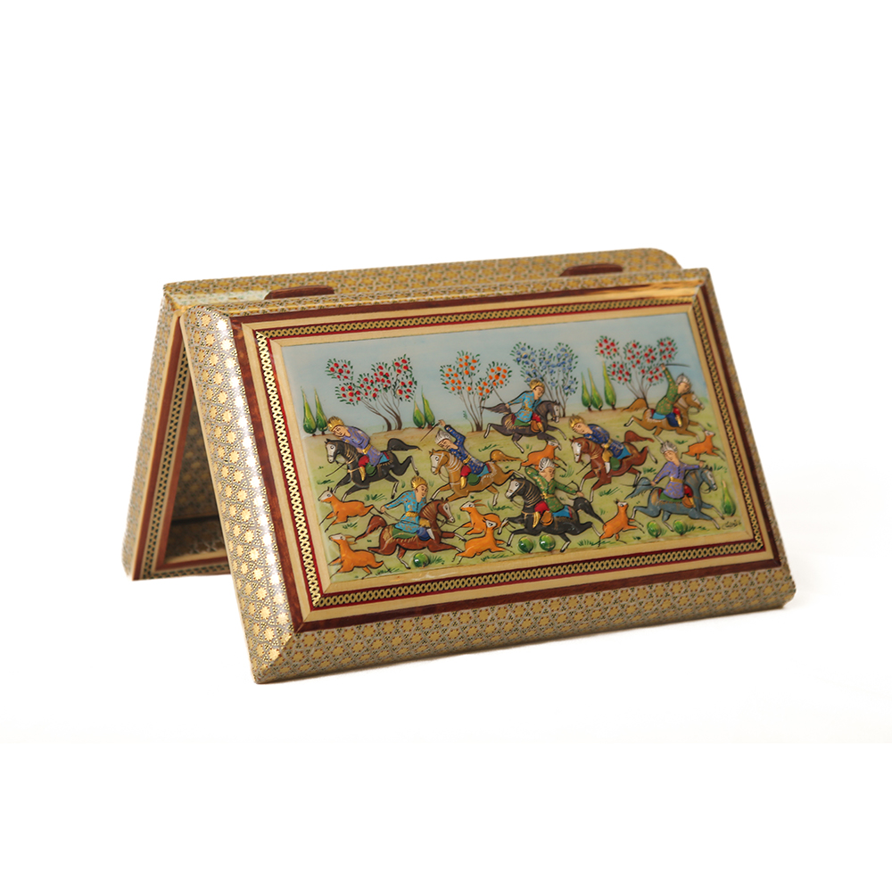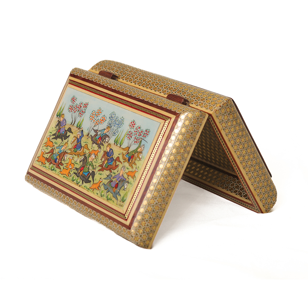 Эта шкатулка — настоящий пример искусства хатамкари / хатам кари, одного из самых изысканных народных промыслов Ирана. Созданная вручную в городе Исфахан, она сочетает мастерство, традицию и утонченный дизайн, превращая каждую деталь в живую историю.