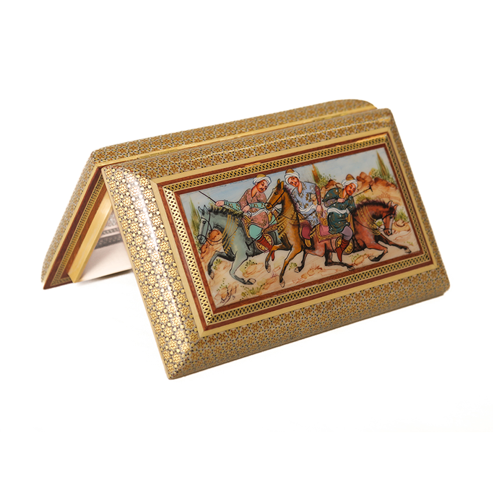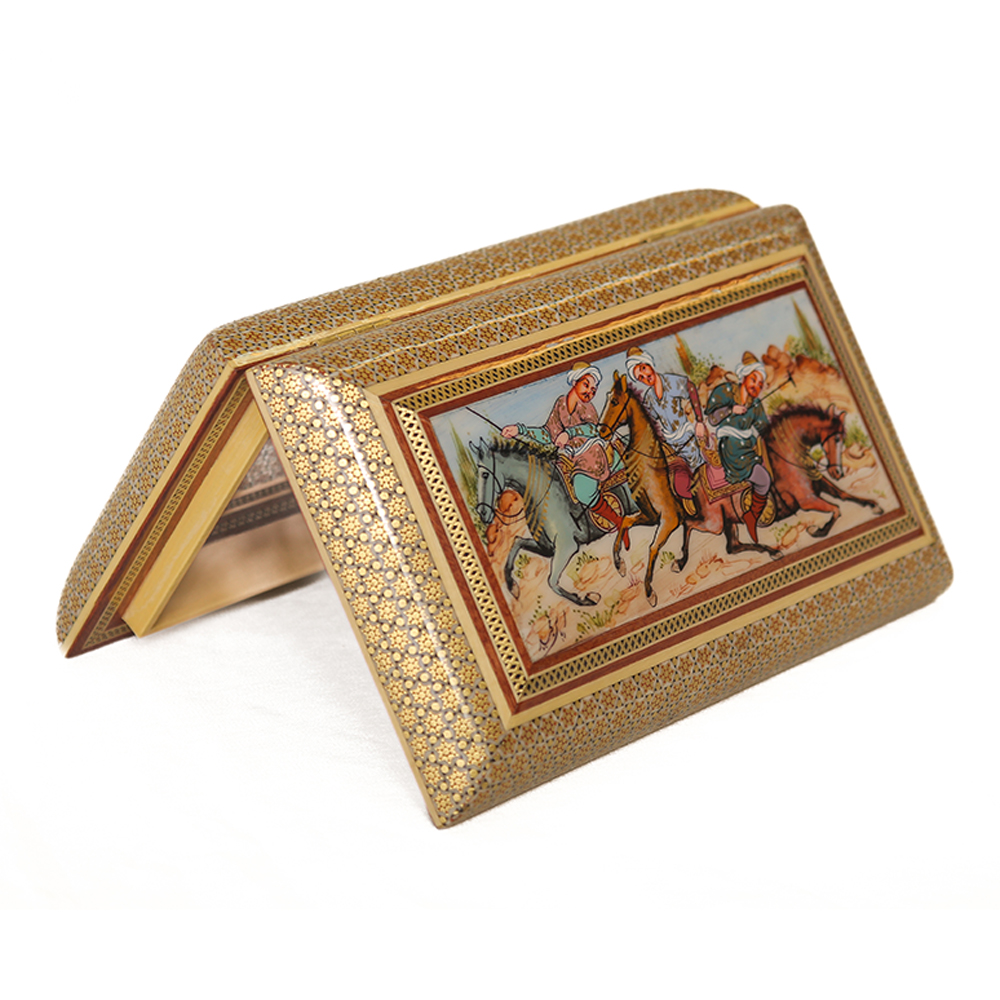 Эта шкатулка — настоящий пример искусства хатамкари / хатам кари, одного из самых изысканных народных промыслов Ирана. Созданная вручную в городе Исфахан, она сочетает мастерство, традицию и утонченный дизайн, превращая каждую деталь в живую историю.