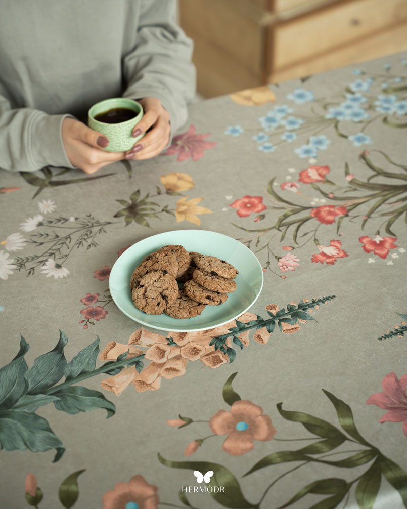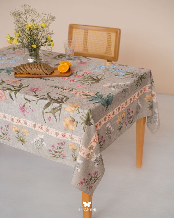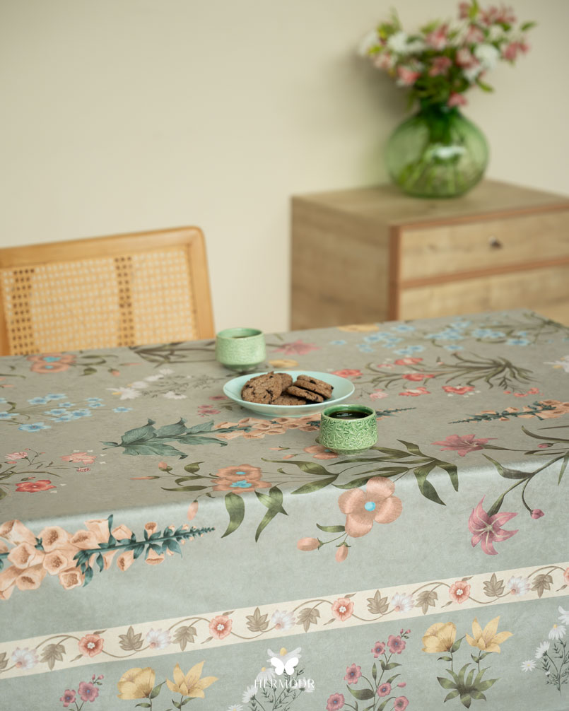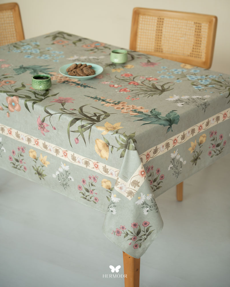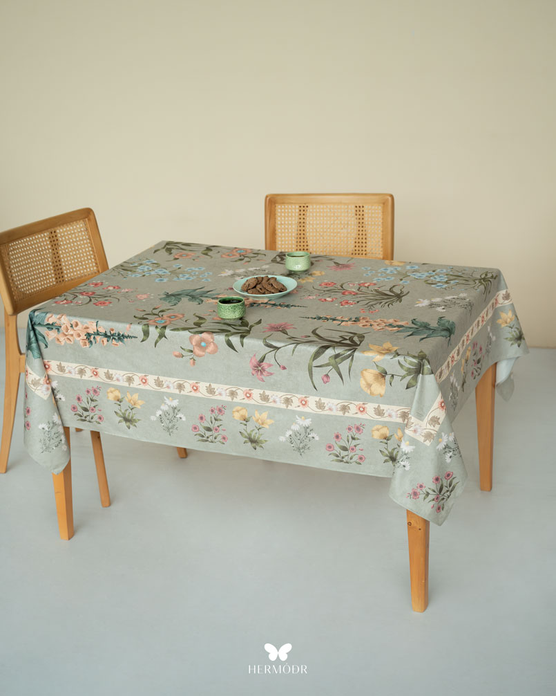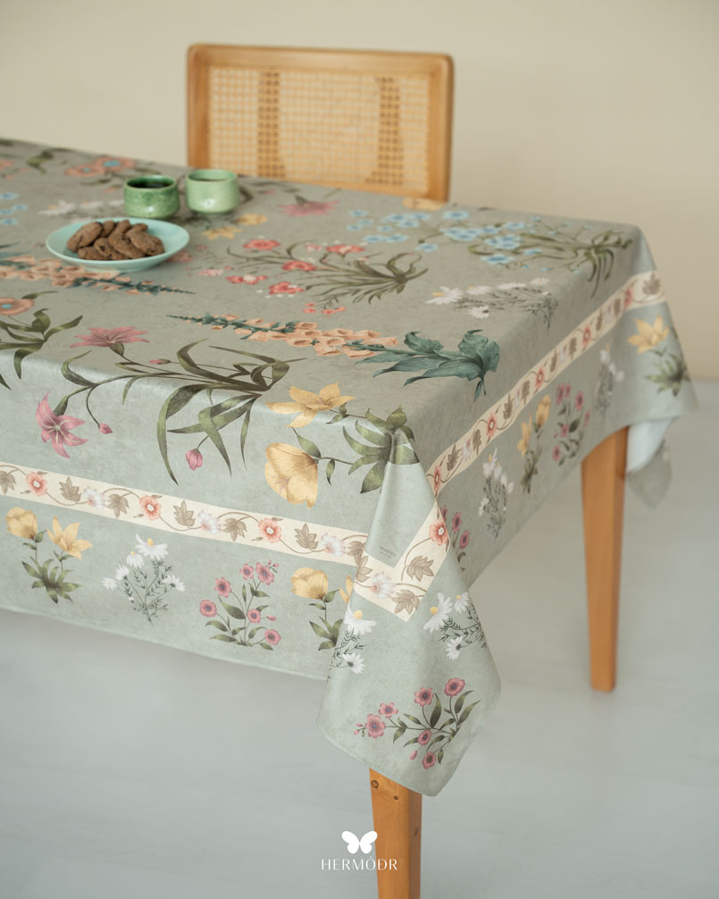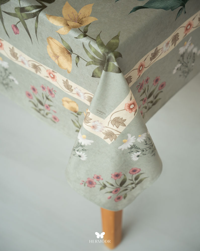 Скатерть выполнена из шелковистого бархата: она мягкая на ощупь, устойчива к выцветанию и сохраняет форму после стирок. Материал подходит для регулярного использования и не требует сложного ухода. Скатерть защищает поверхность стола и одновременно выполняет декоративную функцию — её можно использовать отдельно или сочетать с раннером и посудой.