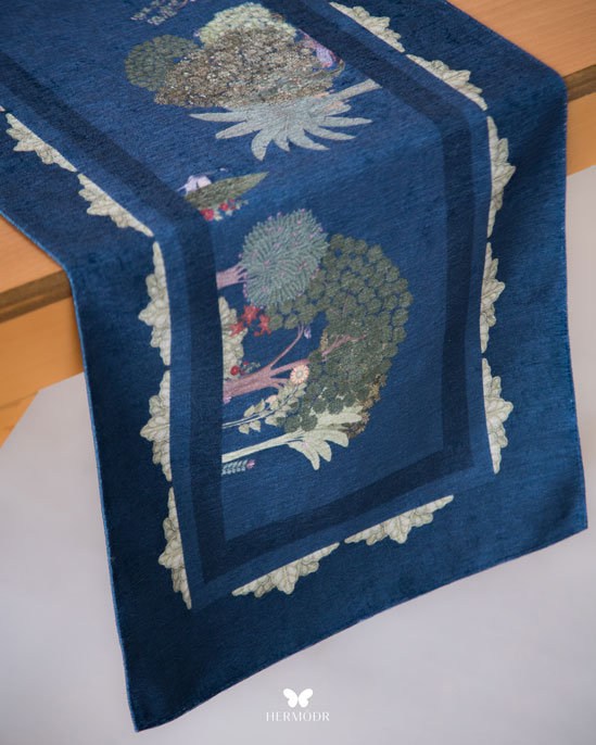 Иранская скатерть-дорожка Baharat Hermodr — декоративная дорожка для сервировки стола, которая добавляет интерьеру аккуратный и завершённый вид. Она подходит для ежедневного использования, праздничной сервировки и фотосъёмок.