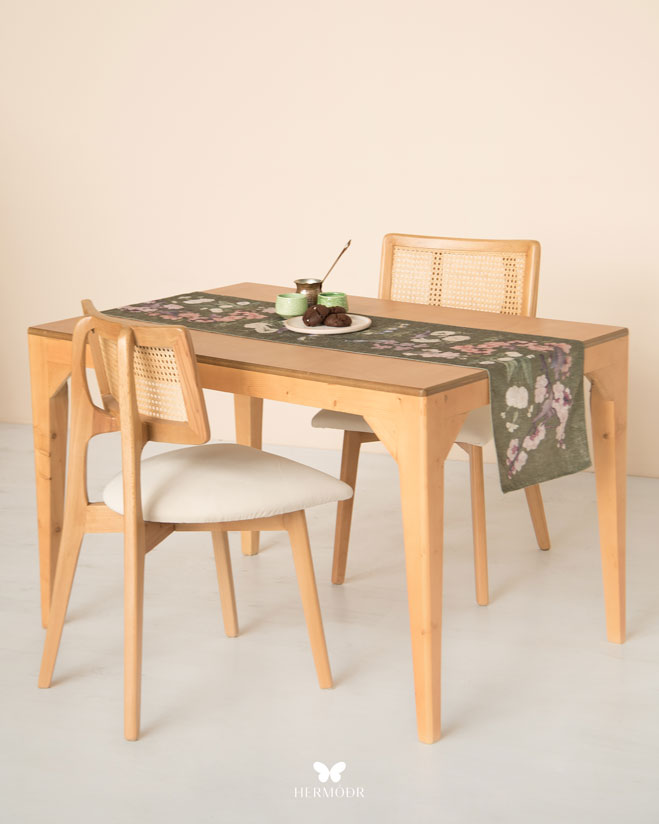Иранская скатерть-дорожка Nobahar Hermodr — декоративная дорожка для сервировки стола, которая добавляет интерьеру аккуратный и завершённый вид. Она подходит для ежедневного использования, праздничной сервировки и фотосъёмок.